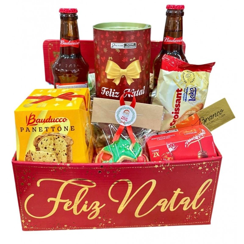 Uma caixa de Natal pensada para encantar. Cervejas selecionadas acompanham uma fina lata de biscoitos natalinos, panetone macio, biscoitos artesanais e o croissant Lacta. Para completar, os famosos chocolates suíços adicionam sofisticação e sabor, tornando este presente único, especial e memorável.