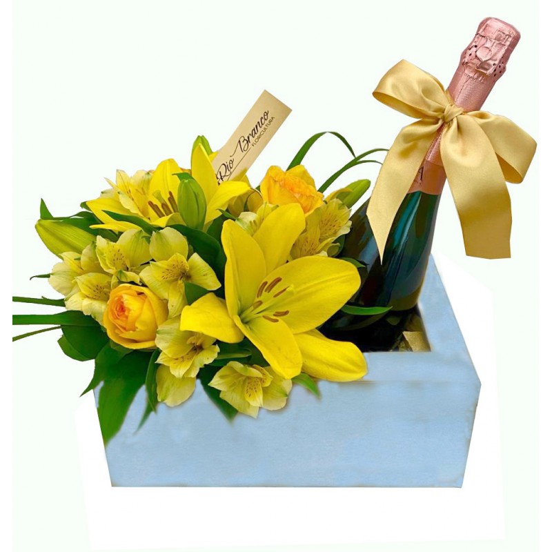 Belíssimo arranjo em uma linda caixa(28cm/20) *cor em estoque * com um fino espumante