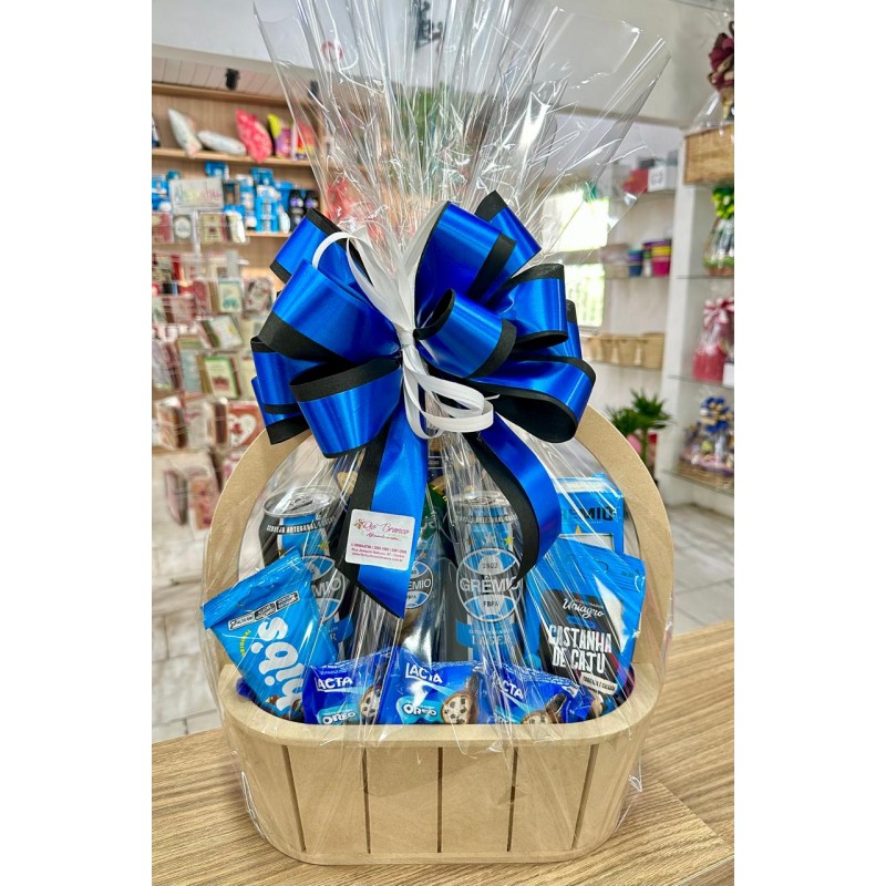 Elegante cesta decorada com duas cervejas oficiais do Grêmio, castanhas selecionadas, chocolates finos , biscoito salgado e um exclusivo copo do Tricolor. Um presente refinado para celebrar a paixão gremista com estilo. ⚽